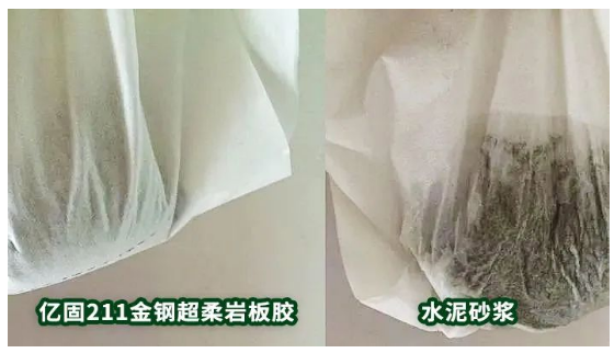 億固211金鋼超柔巖板膠的超強(qiáng)保水性,一方面可以避免因?yàn)闅鉁馗摺w吸水性太強(qiáng)導(dǎo)致瓷磚膠水分流失過快,確保瓷磚膠有足夠的水分來達(dá)到足夠的強(qiáng)度。