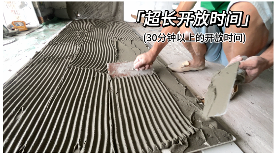 針對大板鋪貼的施工難度,億固211金鋼超柔巖板膠開放時間可達(dá)30分鐘,是普通瓷磚膠可操作時間的1.5倍。為工人提供更多檢查和鋪貼的時間,也進(jìn)一步提升了大板鋪貼的安全性。